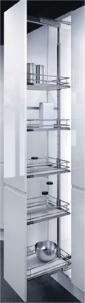 Характеристики: — Для тумбы шириной 300мм. Высота корпуса 1900-2150мм — Рама на направляющих полного выдвижения. — Повышенная прочость — система выдерживает нагрузку до 120кг. — Благодаря регулируемому замку-натяжителю система не провисает. — Трехмерная регулировка фасадного крепления. — Регулировка корзин по высоте. — Корзины надёжно фиксируются клипсами к раме. — Возможность комплектации электроприводом для автоматического выдвижения колонны при нажатии на фасад. — Частое крепление монтажных планок к фасаду обеспечивает возможность крепления нескольких фасадов. Фурнитура и механизмы продаются только в составе корпусов нашего производства